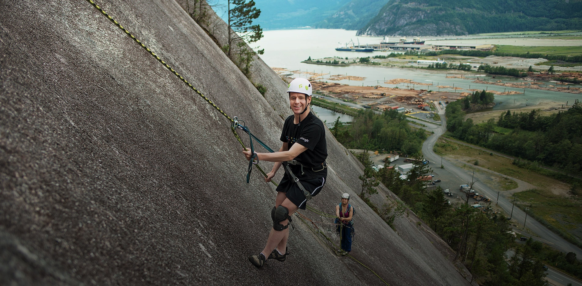 We offer the ‘Therapeutic Climbing Program’, a novel opportunity to climbing a clients’ rehab journey. We also offer a ‘Peer Mentor Climbing’, and we climb outside in Squamish during the drier months.